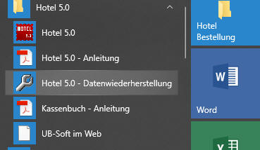 Starten Sie das Programm "Hotel 5.0 - Datenwiederherstellung"
